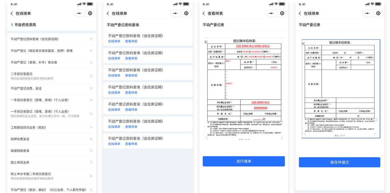 就已经完成预约的事项提供线上填单服务,根据加载的范例表单进行对照填写,将表单填写工作前置化处理,可对填写完毕的表单转存到手机端,用户可自行或在大厅进行打印,缩短业务办事时间、有效提高窗口办事效率。