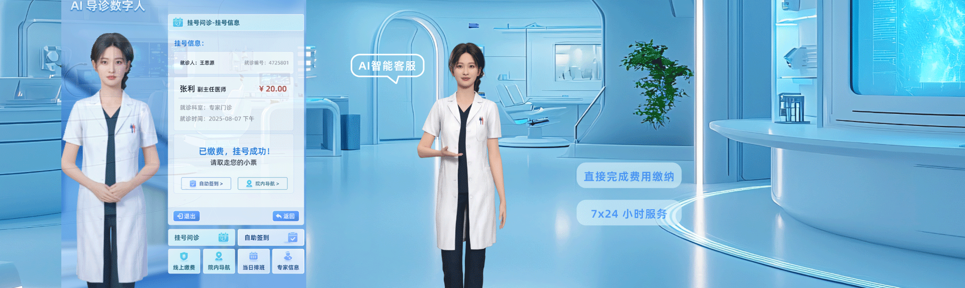 AI智能导诊、AI预问诊、AI智能陪诊、AI智能客服、AI医疗服务数字人