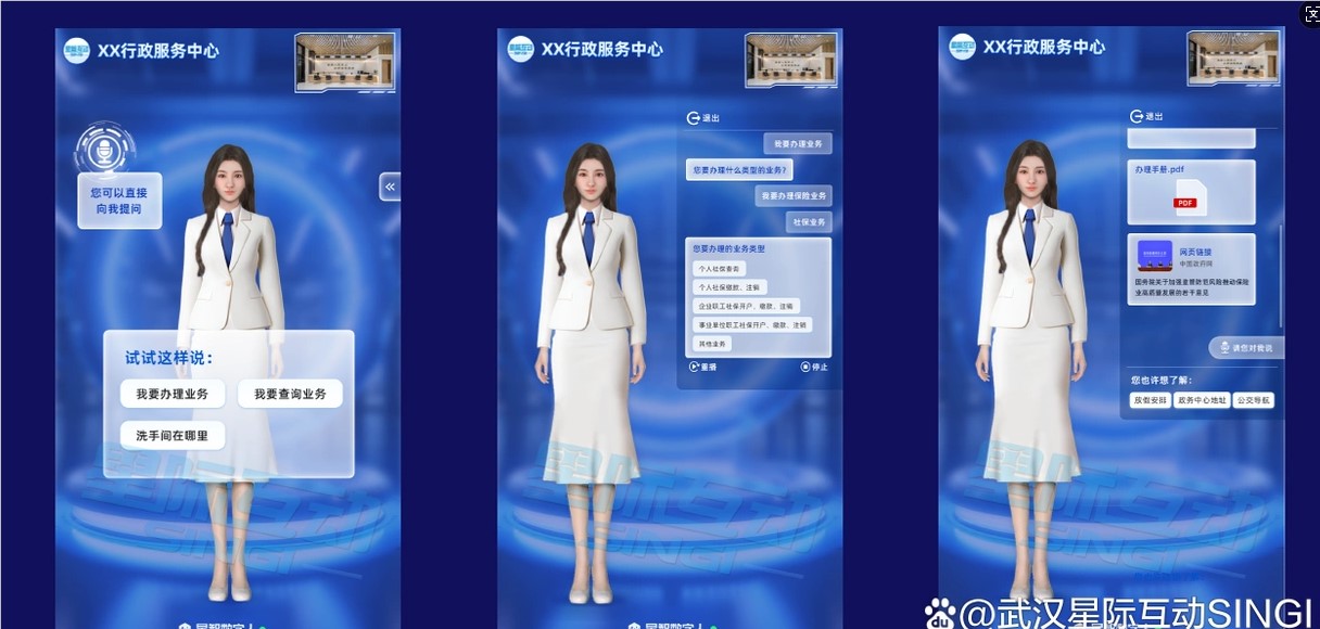 星际互动AI服务数字人的出现,标志着政务服务向现代化、智能化迈出了重要一步。它通过整合政务资源、优化服务流程、提升治理效能等方式,推动了政府向数字化、智能化转型。同时,数字人还促进了政府信息的公开透明和政民互动的增强,为构建更加智慧、高效的政府服务体系提供了有力支持。
